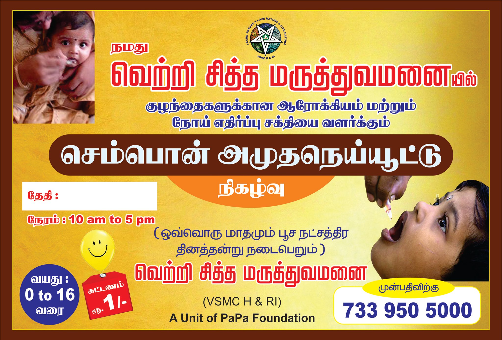 and given to the children through their mouth is called as sempon amutha neiyuttu ,swarnaprashana, suvarnaprashana, swarnamritha prashana or swarna bindu prashana